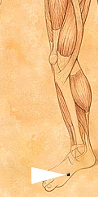 SP4 • Gong Sun • On the medial foot, in the depression distal to the base of the first metatarsal bone.
