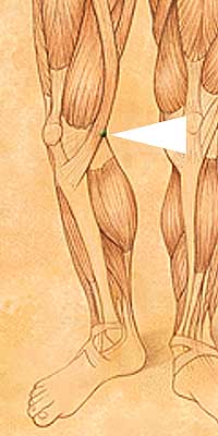 LR8 • Qu Quan • One the medial side of the knee, in the depression of the transverse popliteal crease between the upper border of the medial epicondyle of the femur and semitendinosus and semimembranosus tendons.